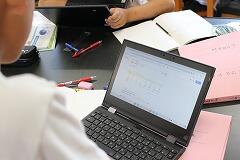4年生が、垂直と平行の描き方を学習した後に、長方形と正方形を描いていました。2種類の三角定規を上手に使って描く学習でした。1枚の三角定規は固定し、もう一枚の三角定規を動かし平行の線を描くところが難しそうでした。たくさん描いて上手になってくださいね。次に2年生が、引き算の筆算の学習をしていましたので紹介します。2位数の筆算の答えを確かめる方法として、(答え)+(ひく数)=(ひかれる数)になっていることを理解して、ひき算の答えを確かめる練習をしていました。問題を一生懸命に解いている姿に目が止まりました。早く終わった児童は、タブレットを用いて更に練習を積み重ねたり、たし算の問題に取り組んでいました。また、ヒントがほしい児童は先生のところに行って、わからないところを質問していました。一人一人の理解の具合に応じて対応していました。