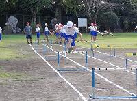 6年生の体育の時間の様子です。今日は、ハードル走に取り組んでいました。