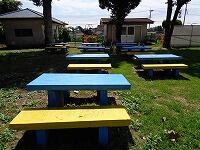 菓子野小学校には、屋外教室と呼ばれる場所があります。コンクリートのテーブルとベンチが設置してあります。最近は、テーブルとベンチの破損により使用禁止になっていました。