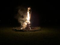 夕食をお腹いっぱい食べた後、キャンプファイヤーを楽しみました。準備していた出し物も大成功でした。庄内小、乙房小から大きな拍手をもらいました。