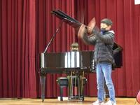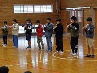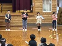 4年生が、歌と鍵盤ハーモニカの演奏、しおりのプレゼントをしました。