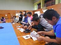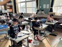 1・2年生が読書感想画に取り組んでいました。パレットへの絵の具の出し方、水の量、ぬり方などを実際に見せたり掲示資料を使ったりして丁寧に指導されていました。完成が楽しみです。