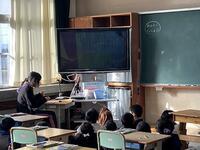 国際交流員3名が来校しました。1~4年生が、アメリカ、モンゴル、中国の紹介などを聞き、交流しました。