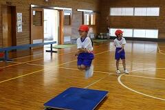 ◆腕をクロスさせて跳ぶ「交差跳び」、◆「シュシュッ!」と素早く回す「二重跳び」なかには、ボードの跳ね返りを上手く使って、1年生とは思えないような鋭いスイングで二重跳びに成功する子の姿も!