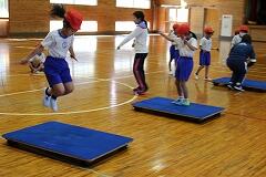 【冬の寒さを吹き飛ばすジャンプ!】 ジャンピングボードという強力な味方を得て、1年生のなわとび学習はさらに盛り上がっています。「できない」が「できる」に変わる瞬間。その喜びが、子どもたちの「もっとやりたい!」という意欲に繋がっています。これからも、楽しみながら体力づくりに励む子どもたちを、温かく見守っていきたいと思います。