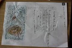 教科書には、ヒントとなる4つの場面絵(ねずみたちが舟に乗る様子や、ふくろうに出会う様子、おかしを拾う様子など)が描かれていますが、どんなねずみが登場し、どんな冒険をするのかは、すべて「小さな作家さん」たちの自由な想像力に任されています。机をのぞいてみると、驚くほどユニークな物語が生まれていました。二人の「作家さん」の作品を少しだけ紹介します。
