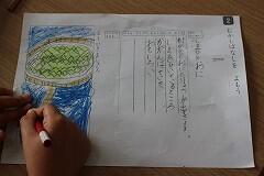 作成したカードには、力強い鉛筆の文字と、色鮮やかなイラストが並びます。文章だけで表現するのではなく、絵を添えることで、その子がどこに一番心を動かされたのかが、パッと見て伝わってきます。