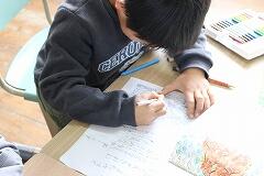 その後は、学んだばかりの筆算のやり方を実践する時間です。写真にあるように、練習問題に取り組み始めると、教室は一転して集中モードに。ある子は、鉛筆を走らせる音だけが響く中、問題と向き合い、黙々と計算を進めていました。また別の子は、計算の途中で少し考えているようでしたが、すぐに「できた!」と小さな声でつぶやき、次の問題へ。中には、ノートいっぱいに丁寧に数字を書き込み、一つ一つの位を意識しながら筆算を進める姿も見られました。