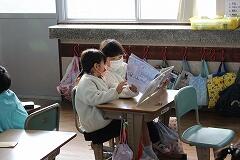 また、中学年の教室では、いつもとは一味違った特別な読み聞かせがありました。なんと、子どもたちのお母さんがボランティアとして参加してくださり、親子での読み聞かせが実現したのです! お母さんの優しい声と、時にユーモラスな声色に、子どもたちは興味津々。慣れ親しんだお母さんの声で聞く物語は、いつも以上に子どもたちの心に響いたことでしょう。身を乗り出して聞き入ったり、時折笑い声が上がったりと、温かい空気に包まれた時間となりました。