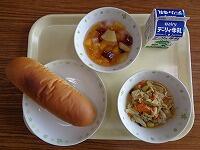 チーズパン、八宝菜、フルーツ白玉、牛乳