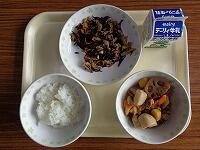 しろごはん、栗と秋野菜の煮物、ひじきの炒め煮、牛乳