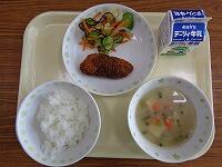 しろごはん、ホキフライ、白菜の塩こんぶあえ、あつあげのみそ汁、牛乳