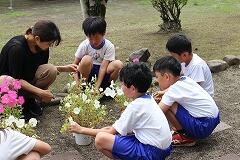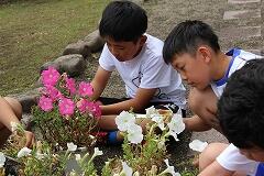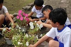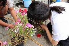 6月5日(木) いのちをつなぐ、花のお手入れ ~4年生、ペチュニアの切り戻しに挑戦~
