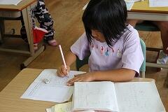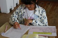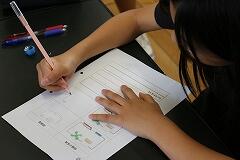 まさに、かんさつ名人のたまごが、自分の文章と真剣に向き合っている瞬間です。赤鉛筆を手に、お手本やチェックポイントが書かれたプリントと自分の文章を何度も見比べ、「もっと良い言葉はないかな」「先生が教えてくれたポイントはクリアできているかな」と、聞こえてきそうなほどの集中力で推敲を進めていました。