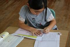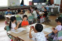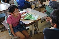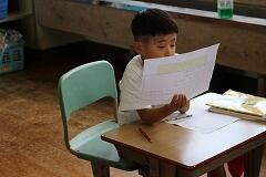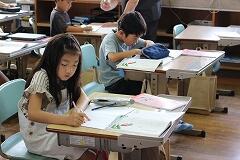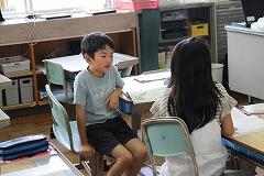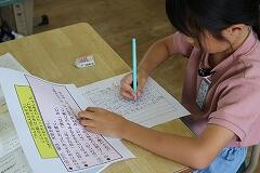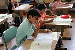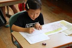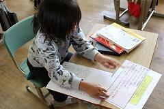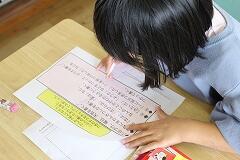 より良い表現にしようと、一生懸命に言葉を探す意欲が教室にあふれていました。見直しが終わると、今度は友達と観察日記の読み合いです。「〇〇さんのミニトマト、もうこんなに赤くなってるんだ!」「この表現、おもしろいね!」と、互いの発見や工夫に感心しきり。友達の日記を読むことで、新しい視点や素敵な言葉を見つけ、自分の観察のヒントにもなったようです。