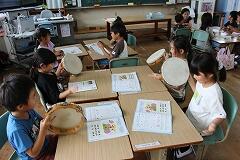写真のように、グループの友達と顔を見合わせ、楽しそうに相談しながら、歌詞の雰囲気や気持ちにぴったりのリズムを工夫していました。タンバリンやカスタネットの軽やかな音が、子どもたちの歌声と重なり、教室は温かいハーモニーに包まれていました。