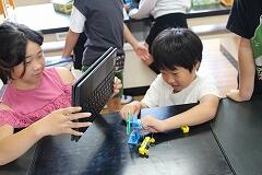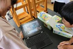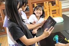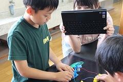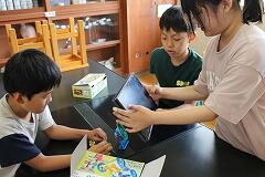 その後も、記録した映像を振り返り、もう一度実験を撮影し直す子どもたちの様子も見られました。このように子どもたちの探究心は止まりません。乾電池の「並列つなぎ」と「直列つなぎ」の実験にも挑戦し、電気のつながり方によって、そのはたらきが変わることに気付いていきました。