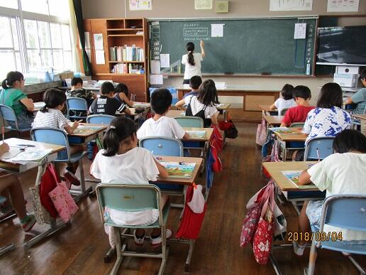 8月27日(月曜日)に2学期がスタートしました。全校児童104名全員が元気に登校できました。始業式では、3年生児童の3名が2学期にがんばりたいことを発表しました。3名ともやる気に満ちた表情での発表でした。校長先生からは、「今日から3日間で、3つの時計(体内時計、腹時計、1日の時計)を整えましょう。」というお話がありました。その後、夏休み中に出場した大会での表彰をたくさん行いました。