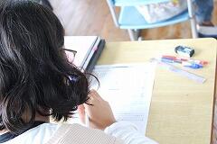 2学期から学力向上の1つの手立てとして、新聞記事を読んで問題を解く活動を始めました。問題は、5・6年生用と1~4年生用と準備しています。新聞には幅広い分野の情報が分かりやすく掲載されているので新しい知識を身に付けられます。また、紙面には一覧性があるのでさまざまなニュースに触れることで新たな気付きが芽生えます。 さらに、新聞を読むと文章の書き方や表現力が身に付き、多様な意見や考え方に触れることで自分の考えを深めることができます。 このようなことから、新聞を活用した問題を解く活動を全校で1週間に1回水曜日に実施することで、子どもたちの思考力、判断力、表現力の育成につなげようと実戦が始まりました。画像は、5年生の取り組んでいる様子です。解き終わった後は、先生から問題の解説をしてもらったり、分からなかった言葉を辞書で確かめたりしています。