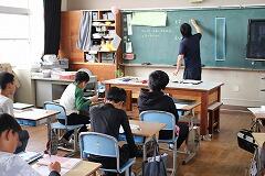 6年生は生活を豊かにするための布を用いた製作で、ナップザックを製作していました。日常生活で使用する物を入れるためのナップザックを製作することを通して、物を出し入れするためのナップザックの入り口のゆとりのサイズや縫いしろの部分を考え、まち針を打ち、手縫いで仮縫いをし、ミシン縫いで仕上げていました。わからないところは、友達や先生に聞きながら製作を進めていました。今日の製作では、普段使っている袋の入り口の部分を裏返して見えない部分を「見える化」することで、袋の構造を理解しやすくしていました。6年生は、友達とともに手順を確認しながら、楽しく丁寧に製作している姿が学習の様子からうかがえました。目的をもって物を作り上げる達成感やできあがった後に使用する喜びを味わうことは、家庭生活を豊かにしていくことにつながると思います。