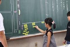 本校では、国語科における『子どもたちが主役の授業』を全職員で研究しています。先日4年生『ごんぎつね』の学習をとおして、子どもたちに「考えてみたい」と思わせるような発問や学習活動が実践できているか全職員で参観しました。ごんが償いとして栗を持ってきたところ、兵十に見つかり火縄銃で撃たれてしまう場面において「ごん」の気持ちを考える活動が始まりました。この場面でのごんの動きを全体で確認した後に、最後は撃たれてしまった「ごん」は、自分のとった行動が『満足だったのか・不満足だったのか』黒板にネームカードを貼り付けて自分の考えを明らかにしました。子どもたちは、自分と同じ意見・ちがう意見の友達と考えを交流しました。画像にもありますように、活発に子どもたちは意見交換をしていました。最後に、ごんと兵十の心の距離を表現する『心メーター』(画像3枚目)に、交流した意見をもとにしながら記入して学習を終えました。