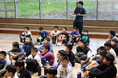 5年生が、2日間の3校合同集団宿泊学習を終えて、全員元気で帰校することができました。代表児童のあいさつでは、2日間の思い出を語る中で、3校合同で協力して楽しい活動ができたことが紹介されました。当初の期待された目標が十分に達成されたことがあいさつからよく分かりました。また担任の先生からも、5年生の協力して行った追跡ハイキングをはじめとする全ての活動が大変素晴らしかったと褒めてくださいました。今回の集団宿泊学習を経験したことで、これから5年生が菓子野小高学年として活躍していく姿が思い浮かびました。