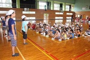 7月22日(金)は、1学期終業式でした。1学期は72日(2年以上)でした。終業式では、1学期がんばったことと題して、4年生3人が作文発表をしました。また、校長先生が児童の1学期のがんばりを褒めるお話がありました。最後に、係の先生方3名(安全、健康、学習)からも話がありました。特に安全に気を付けて生活して欲しいと思います。