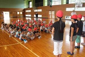 8月3日(水)は、登校日でした。全校朝会では、校長先生から8/6と8/9、8/15の戦争についての話から命の大切さについての話がありました。また、係の先生からきまりを守って生活することについての話を聞きました。さらに、庄内地区一貫教育の取組として、今年も庄内中の1,2年生が6年生に中学校生活についてと題して話をしてくれました。