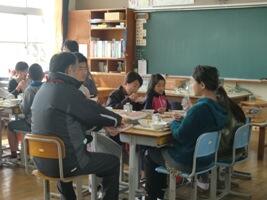1月26日(火)、5年生の学級活動の時間に、「おやつ」をテーマにした山田小の栄養教諭の先生の授業がありました。おやつのエネルギー量を消費するために必要な運動量やおやつの食べ方のポイントを学ぶことができました。また、授業後は給食を一緒に食べていただきました。