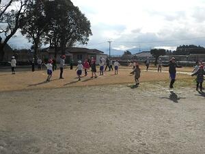2月2日(火)に4年生が菓子野保育園の園児と交流をしました。天気もよく、園庭で全園児と4年生が砂遊びをしたり、遊具遊びをしたりしました。園児や4年生児童も楽しそうに活動していました。今回の活動を経て、2回目の交流を行う予定です。