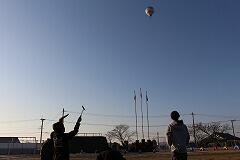 今朝、運動場で清掃活動中に子どもたちが、澄み切った空にふんわりと浮かんでいる気球を見つけました。冬のの晴れた風のない都城盆地では、よく見られる風景ですね。子どもたちは、そうじの手を休めて、気球に向かって手を振っていました。しばらくすると北側から南側に学校の上を通り過ぎ、運動場掃除の子どもたちが見やすい南側の空でゆっくりと降下してくだっているようでした。ずいぶん近づいてきたので、『もしかすると運動場に着陸するかも。』や『気球に乗ってみたいな。』とつぶやいている子どももいました。残念ながらそのまま上昇していきましたが、ひとときのほっかりとする光景でした。(※写真の気球につきましては、ガスパル九州様より掲載の許可を得ております。)