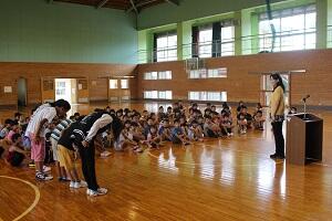 8月5日(水)は、登校日でした。全校朝会では、校長先生から話があった後、五ヶ瀬中等学校に通学する卒業生が話をしてくれました。また、係の先生から安全に関する話がありました。さらに、6年生の学級では、庄内中学校に通学する2名の卒業生が中学校生活に関する話をしてくれました。今回の登校日は、子どもたちにとってキャリア教育について考えるいい機会になりました。