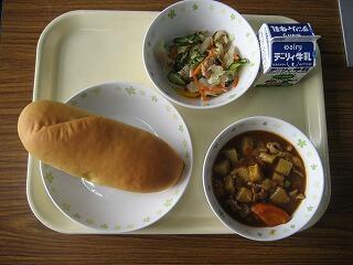 本日のメニューは、コッペパン、牛乳、ポークシチュー、ツナサラダでした。
