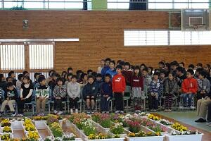 3月25日(水)は、菓子野小学校第64回卒業式でした。今年度から、舞台の上で行う卒業式から対面式で行う卒業式に変えました。卒業生、在校生、保護者、来賓、教職員が、より一体となった卒業式を行うためです。卒業生16名が立派に卒業してくれました。中学生になっても目標をもって、がんばって欲しいと思います。