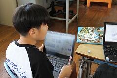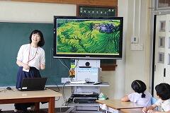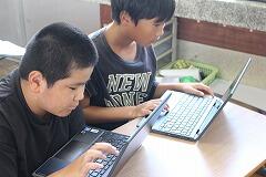 5年生の教室をのぞくと社会科の学習をしていました。全国の米作りが盛んな地域の特徴を見つけるために、タブレットに先生から送られたサイト(川の長さ・広さ、日照時間、気温差)を用いて調べる活動を行っていました。調べるかとどうになると1人、ペアを選び、全国1~3位の新潟県、北海道、秋田県における川があり、広くて平らな都市の昼夜の気温差を調べていました。タブレットの操作、必要な情報をサイトから読み取る早さが上手な子どもたちが増えてきました。