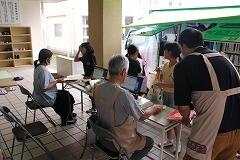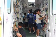 2学期初めてのくれよん号が来校するとあって、真っ先に来てくれたのは2年生でした。動物(主に犬、猫)の本やスポーツの本が置いてあるコーナーが人気でした。その後、続々と他の学年が集まってきました。途中から雨が降り出してきたのですが、くれよん号には庇や横雨からのカバーも付いていますので、雨を気にすることなく子どもたちは夢中で本を選んでいました。自分の好きな本が選べて足取りも軽く教室に帰っていく姿が心に残りました。