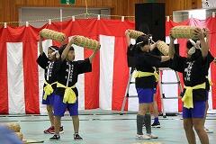 さらに、力強いかけ声とともに登場したのは、子どもたちによる『今屋俵踊り』です。運動会でも披露したこの踊りを、今回は『今屋俵踊り保存会』の皆さんと一緒に、息を合わせて踊りました。俵を担ぎ、持ち上げ、会場に向けて勢いよく放つダイナミックな動きは、豊作を願う人々の喜びを表しているかのようです。保存会の方々が加わることで、踊りは一層華やかで迫力あるものとなり、地域の伝統をしっかりと受け継ぐ子どもたちの姿がまぶしく輝いていました。