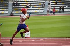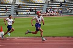 【一生懸命に、ゴールを目指して!】午前中は陸上競技が行われ、特選種目の100m走や400mリレー、そして一般走80mに参加しました。トラックを駆け抜ける子どもたちの姿は、まさに真剣そのもの。バトンをしっかり握り、前を向いて懸命に走る姿からは、目標に向かってひたむきに頑張る6年生のエネルギーが伝わってきました。また、リレーでは、仲間と心を一つにしてバトンをつなぐ姿も見られ、チームワークの大切さも学べたようです。