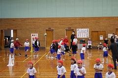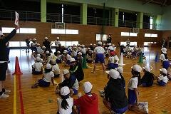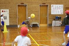 【3白熱のドッジボール大会】 そして最後は、4つのチームに分かれての「ドッジボール大会」。コートの真ん中や外野で、ボールを巧みに投げたり、受けたり、逃げたり。チームメイトと声を掛け合い、勝利を目指して白熱した試合が繰り広げられました。「こっちに投げて。ナイスキャッチ!」、「大丈夫だよ。外野からなげるからね。」どのゲームでも、集会委員会の分かりやすい説明と、子どもたちによるルールを守って楽しく行うマナーのよさが見られました。全校で心から楽しめた、大満足の1時間でした。