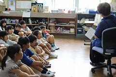 3日(水)朝 かしのっ子が楽しみにしている1学期最後の読み聞かせ活動がありました。子どもたちは、絵本の絵だけに興味を示すのではなく、読み聞かせの方の話す内容やそのときの心情によって、声のトーンを変えたり、間を作ったりすることで絵本の世界に引き込まれているのだと思いました。今日の絵本では、蛇口から出た水にものを当てることで水の変化をクイズ形式にして絵本を読んでくださっていました。読み手の工夫によって様々な読み方があると感じました。読み聞かせグループひまわりの皆様 1学期の活動ありがとうございました。