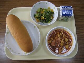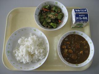 カレーは給食の人気No.1のメニューです。準備の時から、子どもたちから「いいにおい」という声があがっていました。