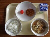 しろごはん、都城なんこつみそ煮、ごまずあえ、牛乳