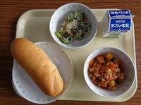 コッペパン、ポークビーンズ、だいこんのちりめんサラダ、牛乳
