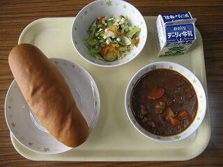 本日のメニューは、コッペパン、牛乳、秋のシチュー、りっちゃんサラダでした。