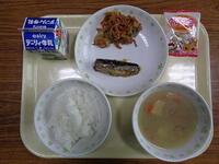 しろごはん、いわしの生姜煮、きんぴらごぼう、じゃがいものみそ汁、節分豆、牛乳