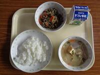 しろごはん、鶏肉とサツマイモのオーロラあえ、はるさめスープ、牛乳