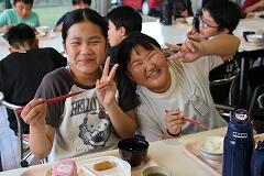 修学旅行2日目の午後、子どもたちは最後の見学地である「平川動物公園」に向かう前に、楽しみにしていた昼食をいただきました。