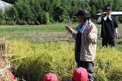 2週間ほどこのまま天日干しをした後、10月20日(月)には脱穀をする予定です。その後、精米を経て、最終目標は11月2日(日)の庄内ふるさと祭りです。このお祭りでは、子どもたちが収穫したお米を3kgずつ袋詰めにして、販売する予定です。
