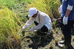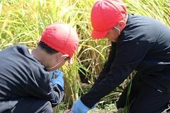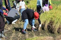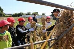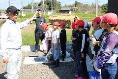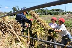 10月7日(火) たわわに実った稲を収穫 ~5年生が地域の皆さんと稲刈り体験~