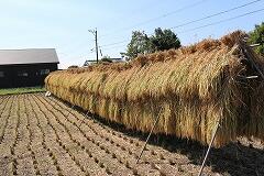 自分たちの手で植え、育てた稲をすべて刈り終え、田んぼのそばにずらりと並んだ掛け干しを眺める子どもたちの顔は、達成感に満ちていました。